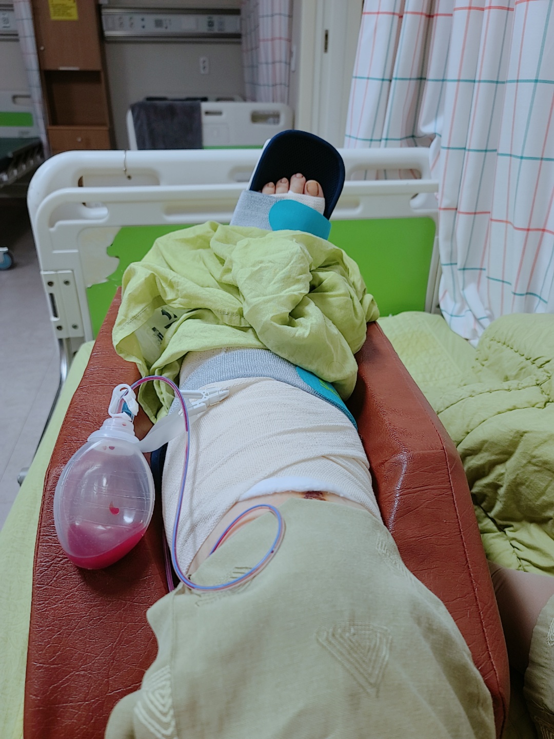 수술은 정말 다행히 무사히 끝나서~ 병실에 올라왔어요.수술후..정말 춥고 힘든시간!!무통주사를 신청해서 맞아야..계속 아프지 않대요!!비싸도…맞아야해요!! 다만 너무 많이 눌러서 무통주사액을 맞으면 [입덧+숙취] 구역질에 시달릴 수 있습니다..그냥 천천히 들어가도록 해놓고 통증이 심하면 담당간호사에게 전달해서 진통제의 양을 조절하는 것이 좋을지도 모릅니다.